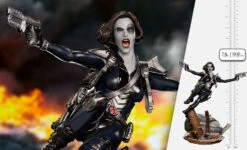 The Bo-Katan Kryze collectible figure features a newly developed head sculpt with remarkable likeness, skillfully crafted Mandalorian helmet and armor with weathering effects, meticulously tailored and form-fitting under-suit, a jetpack with booster fire effects, a pair of blasters, a dagger blade, diorama accessory, and a themed display stand!