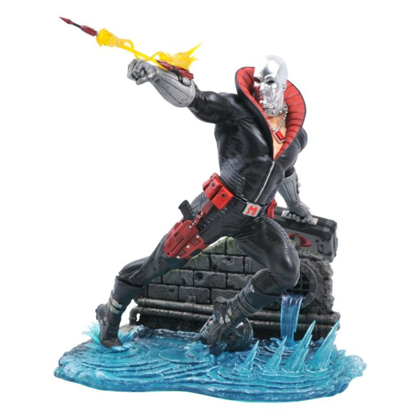 A Diamond Select Toys release! Cobraaaaaa! The forces of good take on the forces of evil in the new Gallery Diorama line based on G.I. Joe: A Real American Hero! Arms dealer Destro kicks off the line in style, firing a wrist missile as he makes his getaway in an underground river. Measuring approximately 10 ” tall, this sculpture is made of high-quality PVC and features detailed sculpting and paint applications. It comes packaged in a full-color window box. Designed by Mark Wong & Tony Simione and sculpted by Jorge Santos Souza.